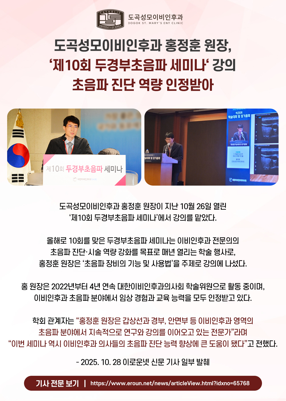 - 전) 강남성모이비인후과 대표 원장 (2010~2025)